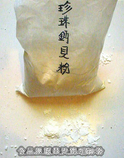 蔬果洗滌粉~3kg。(天然珍珠貝類鈣離子) "蔬果洗滌粉工廠直營原料生產,原料供應,3kg袋裝~使用時請自行分裝 直接購買價2100元(含運送) 市售價格請參考下列網址 http://blog.sina.com.tw/ca22/article.php?pbgid=43028&entryid=613572甲殼素洗滌抗菌粉2kg披售價2100元(含運送)